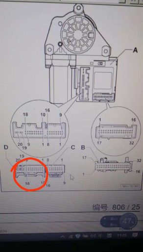 拔下驾驶员测车门控制单元的插头测20号针脚供电电压得到结果有12.27V电压(如上图):测12号针脚的供电电压得到结果为无电压0V,(如下图):